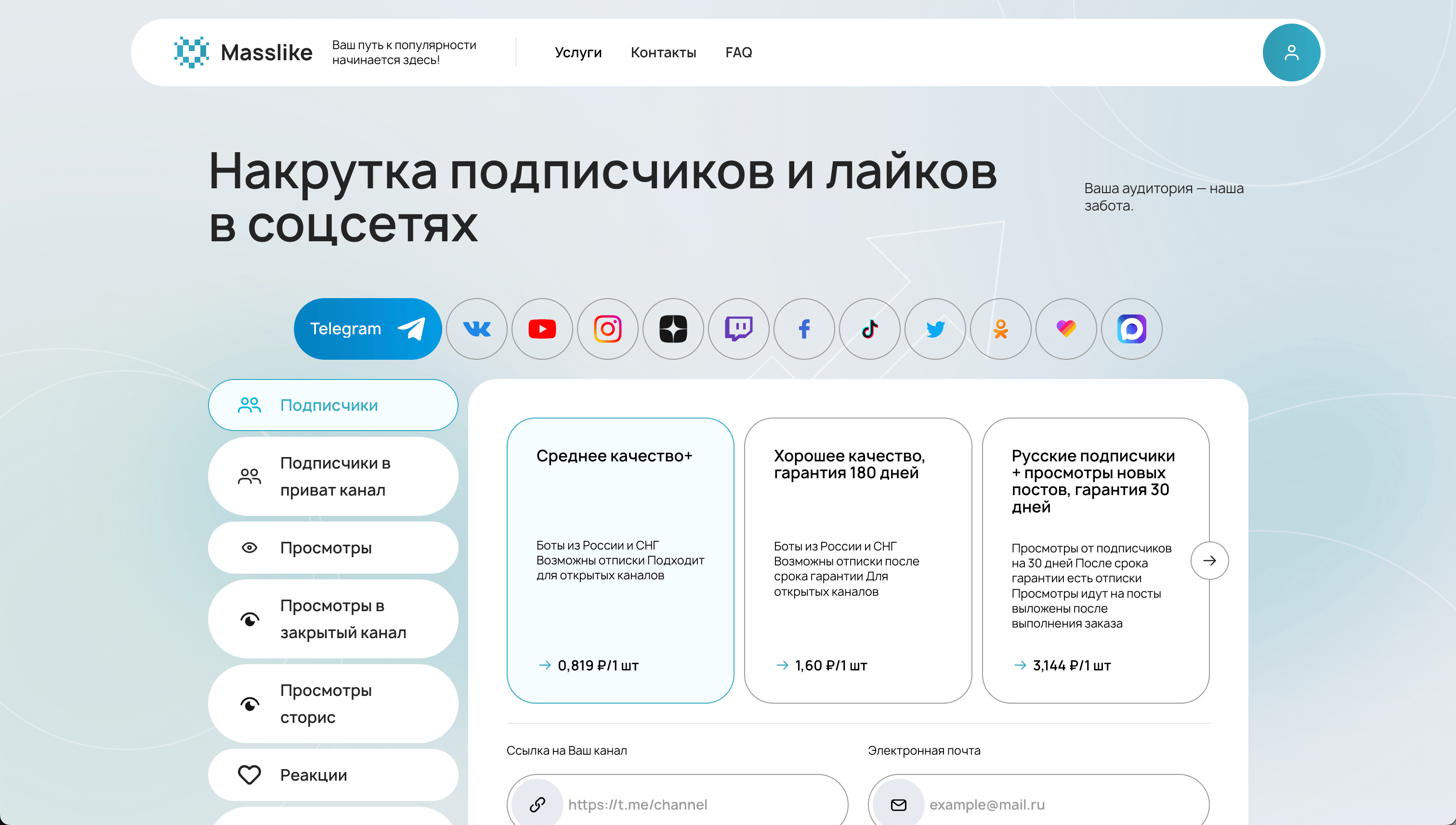 В масслайке по накрутке в ТГ доступны следующие услуги: